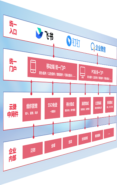 对协作平台提供支持服务,,支持企业应用与协作平台对接,,,,包含组织同步、、消息集成、、待办集成等。。。。支持目前主流的协作平台:钉钉、、、企微和飞书。。。。